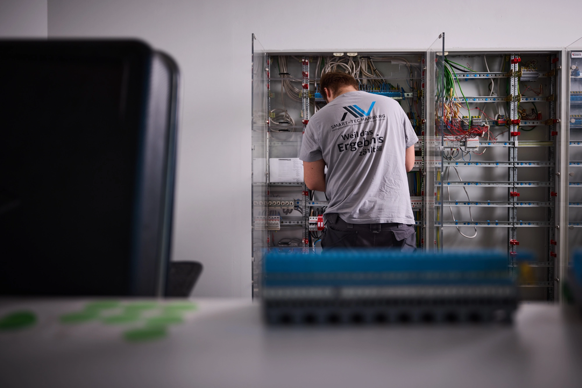 Wir haben die Delüx-Elektriker von SMART TEC bei der Arbeit begleitet und dabei sind diese unverfälschten und lebendigen Bilder entstanden. Menschen direkt bei ihrem Job zu fotografieren, hat immer etwas ganz Besonderes und Persönliches an sich, denn die Aufnahmen zeigen Engagement, Kompetenz und das Miteinander am Arbeitsplatz, live und natürlich. Willst du die Arbeit deines Unternehmens auch professionell und authentisch fotografieren lassen? Dann schreib uns doch eine Nachricht!